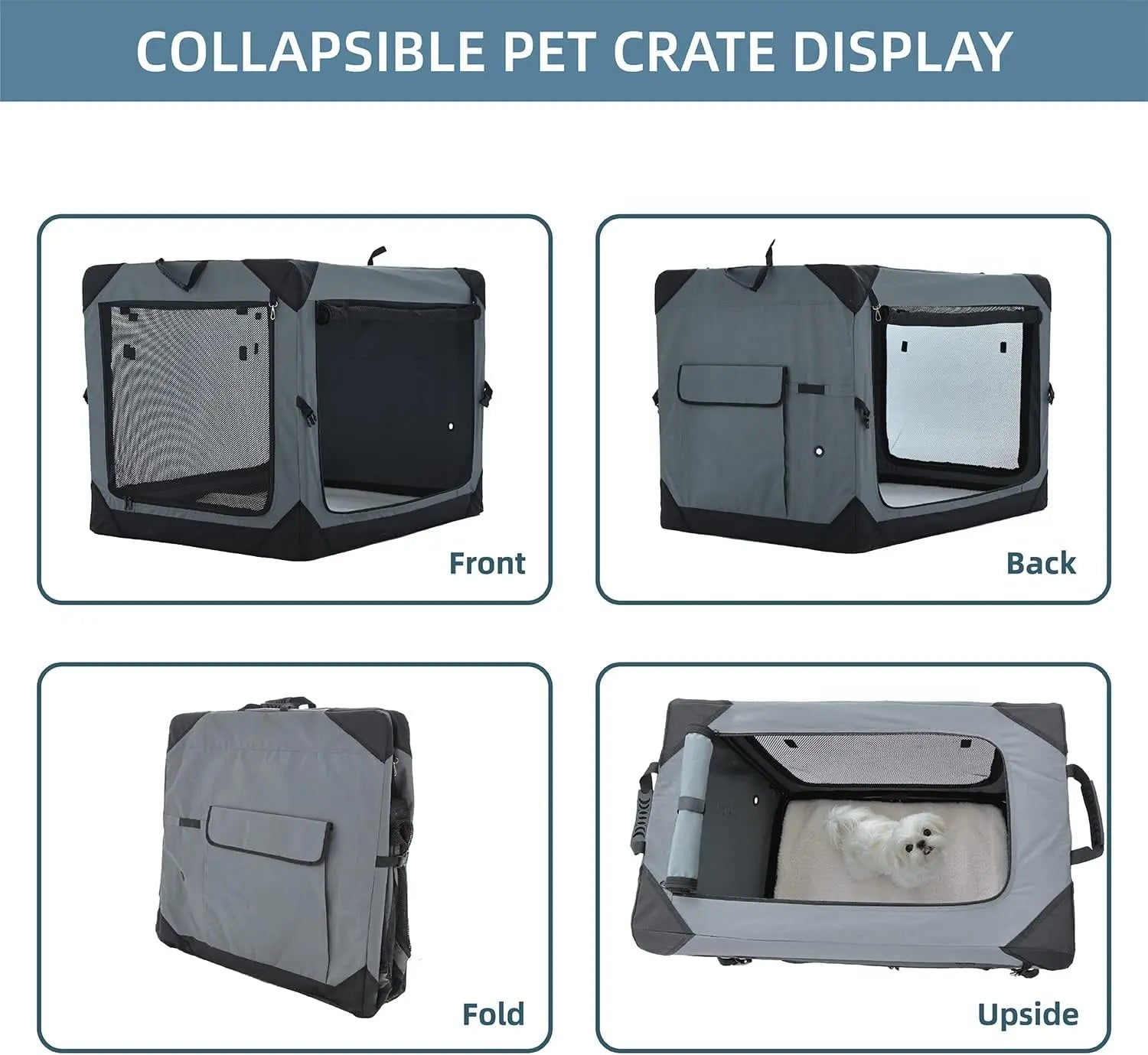 Key features include: 1. **Spacious and Durable Design**: Measuring 36 inches, it offers ample room for large breeds to move around comfortably. Made from sturdy materials, it ensures long-lasting use both indoors and outdoors. 2. **Convenient Folding Mechanism**: The crate easily folds down for compact storage and transport, making it ideal for trips without taking up much space when not in use. 3. **Four-Door Accessibility**: With doors on multiple sides, you can access your pet from different angles, enhancing convenience during setup and daily use. 4. **Chew-Proof Mesh Windows**: These windows are reinforced to resist chewing, providing ventilation while keeping your dog secure and preventing damage from pets that like to gnaw. 5. **Versatile Use**: Suitable for various settings such as car rides, camping, vet visits, or as a cozy resting spot at home, ensuring your dog feels safe wherever you go. 6. **Easy Setup and Maintenance**: Simple assembly instructions allow quick setup without tools. The materials are easy to clean with a damp cloth, maintaining hygiene over time. 7. **Enhanced Safety Features**: Designed with secure latches and stable construction to prevent tipping or escape attempts by active dogs. 8. **Comfort Considerations**: Includes soft padding options (if applicable) or recommendations for adding bedding to make the crate more inviting for extended stays. 9. **Portability Benefits**: Lightweight yet robust design makes it easy to carry around when traveling by car or on foot. 10.**Customer Satisfaction Focused**: Based on positive feedback from other pet owners who appreciate its reliability in various situations; we aim to deliver quality that meets your needs effectively.