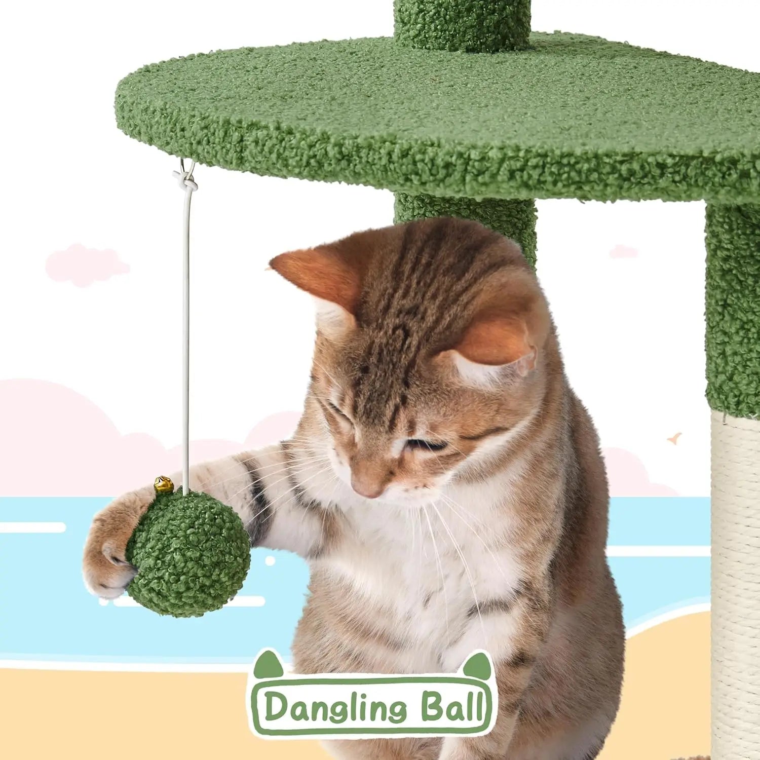 COZY RESTING SPOTS: The different platforms at various tiers, and condos of the cat tree offer comfy and snug spots for your cat to relax, nap, and observe their surroundings, allowing your feline friend to rest under a palm tree