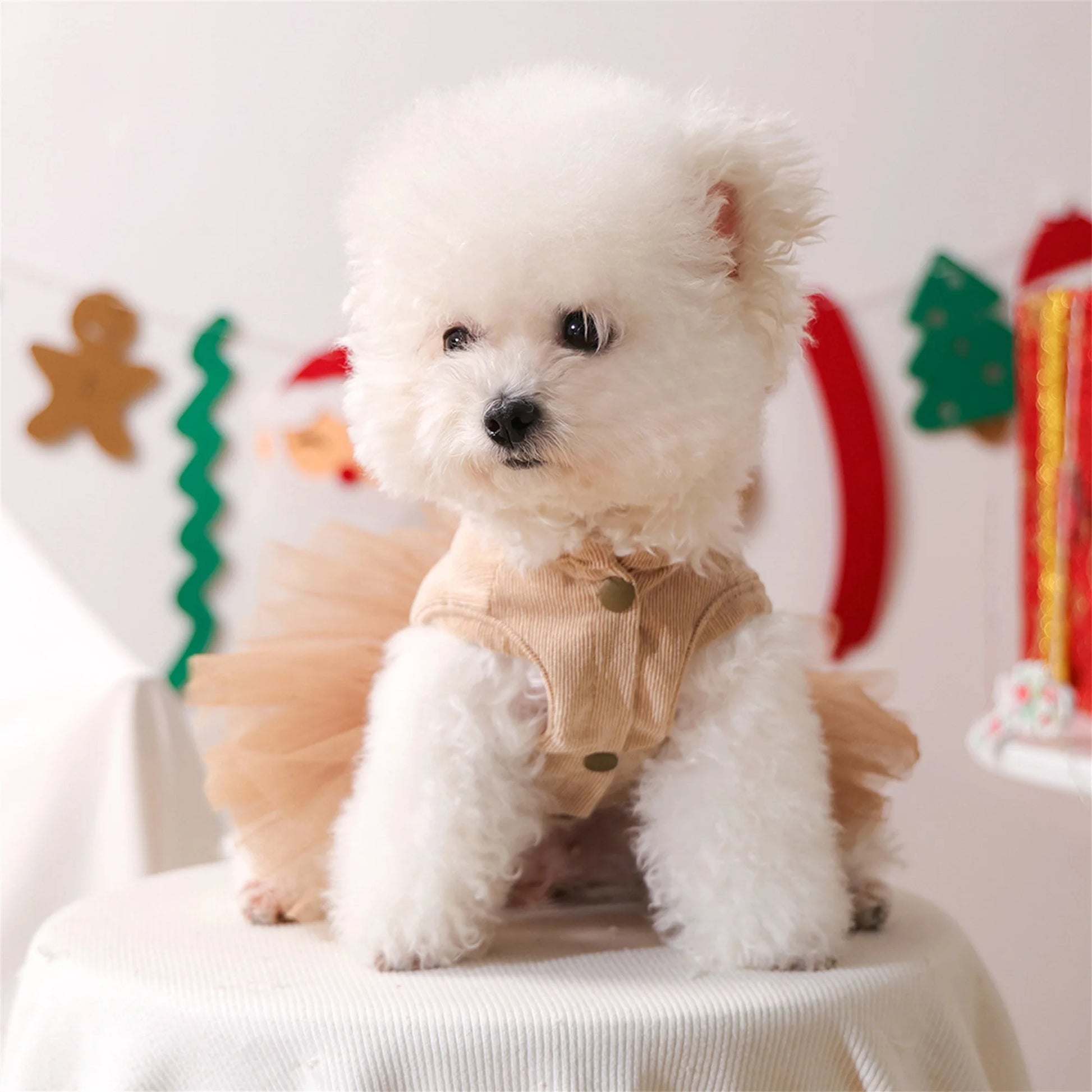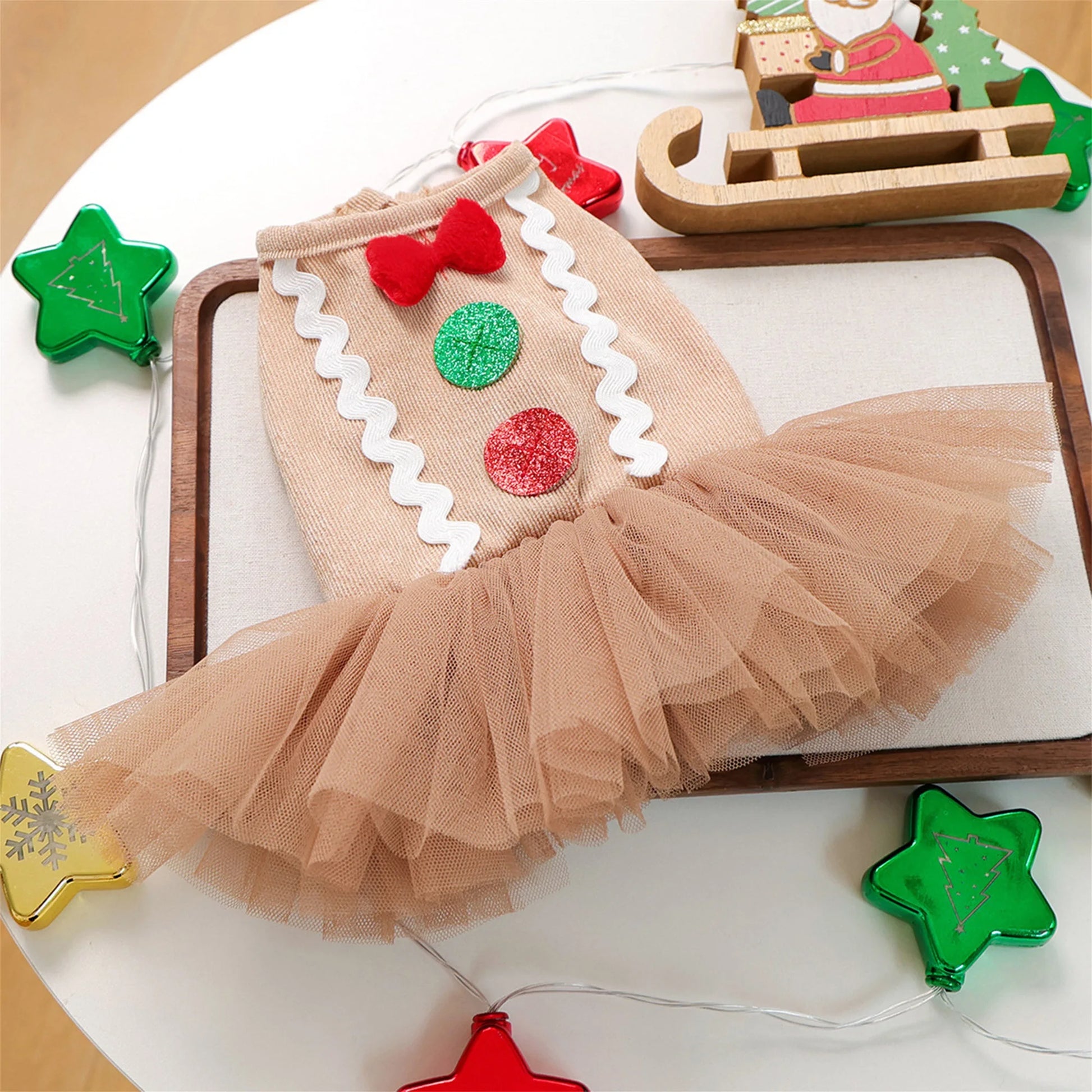 Dog Christmas Dress Gingerbread Man Puppy Girl Tulle Dress Pet Holiday Clothes for Small Dogs Cats