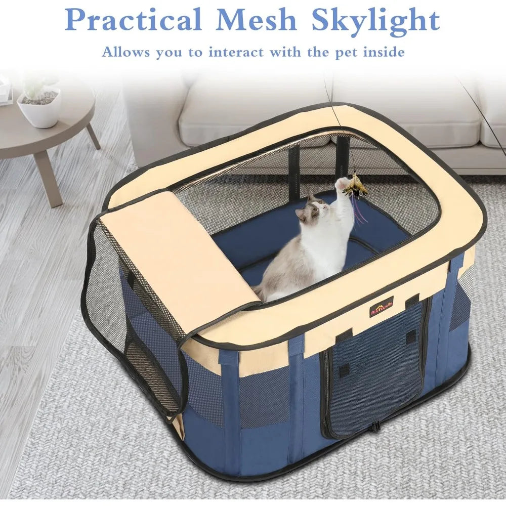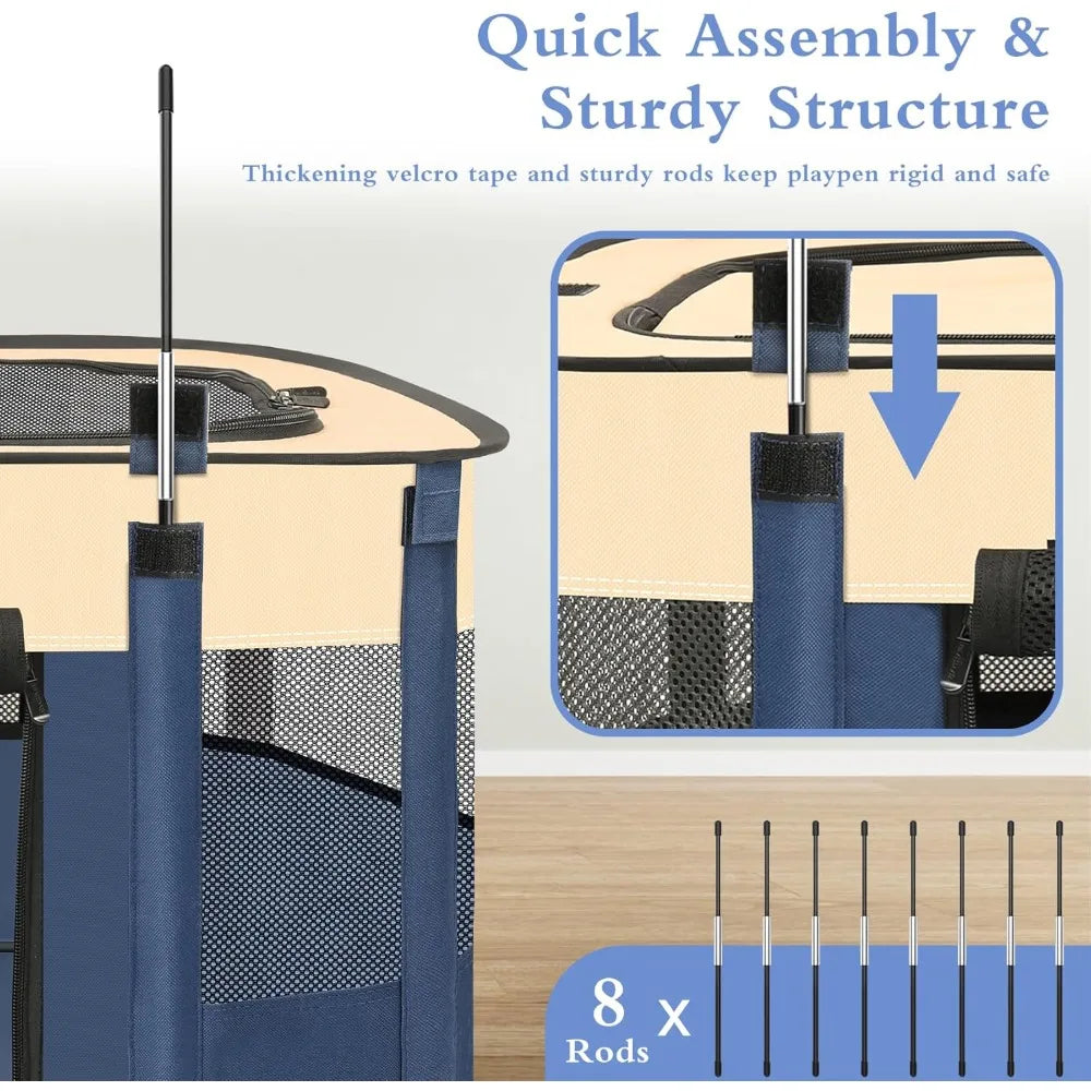Foldable Dog Playpen Portable Pet Cage for Small Animals Indoor Outdoor Travel Camping Use with Carrying Case Blue