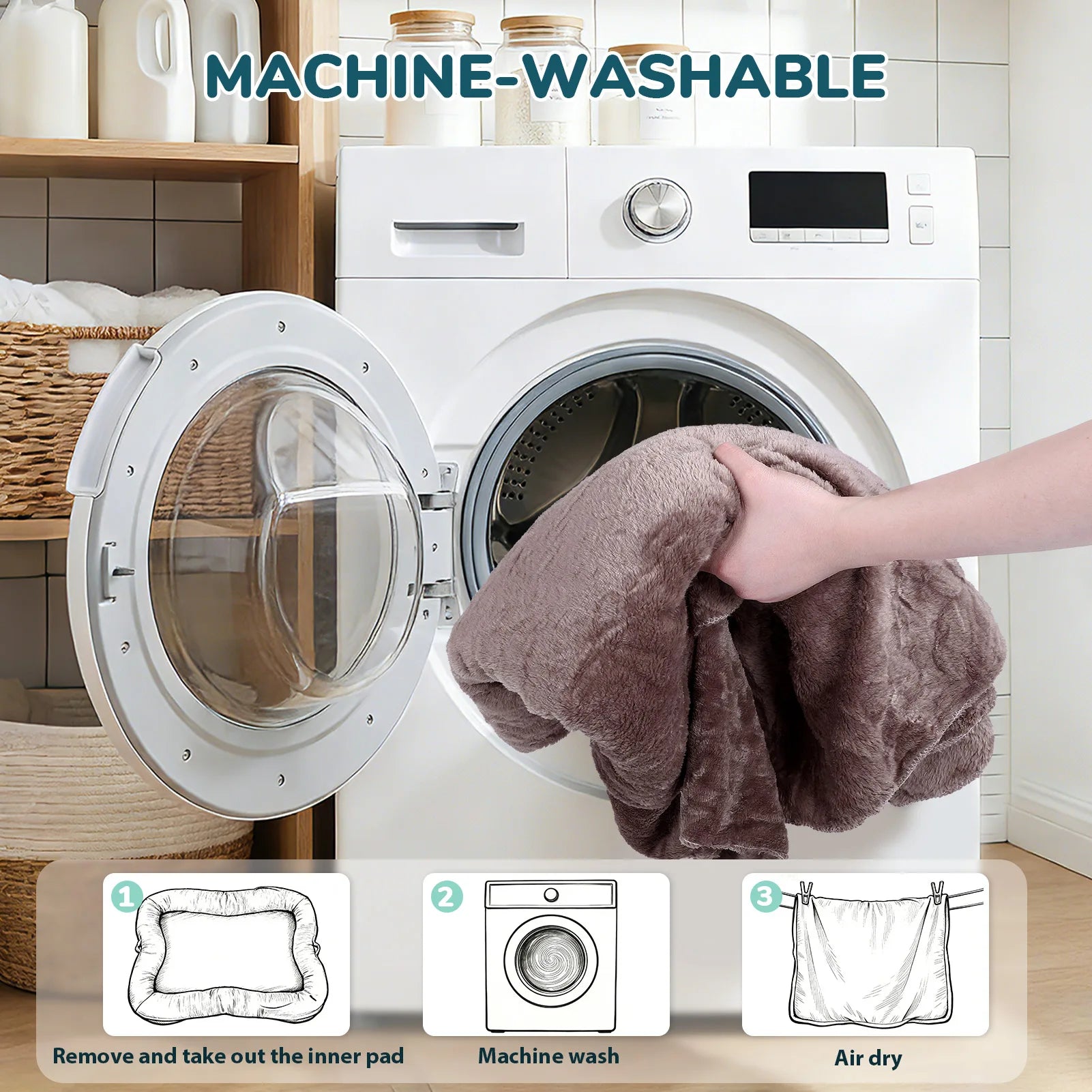 5. Safety Features: Designed with non slip rubber particles on the bottom, this dog bed remains stable during use. It's made from safe, odorless materials, ensuring a restful and health sleep environment for your furry friends.
