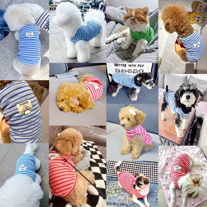 Summer Pet Vest Fashion Simple Striped Dog Shirt Chihuahua Yorkshire Thin Soft Vest Puppy Cat Vest Costume Dog Clothing