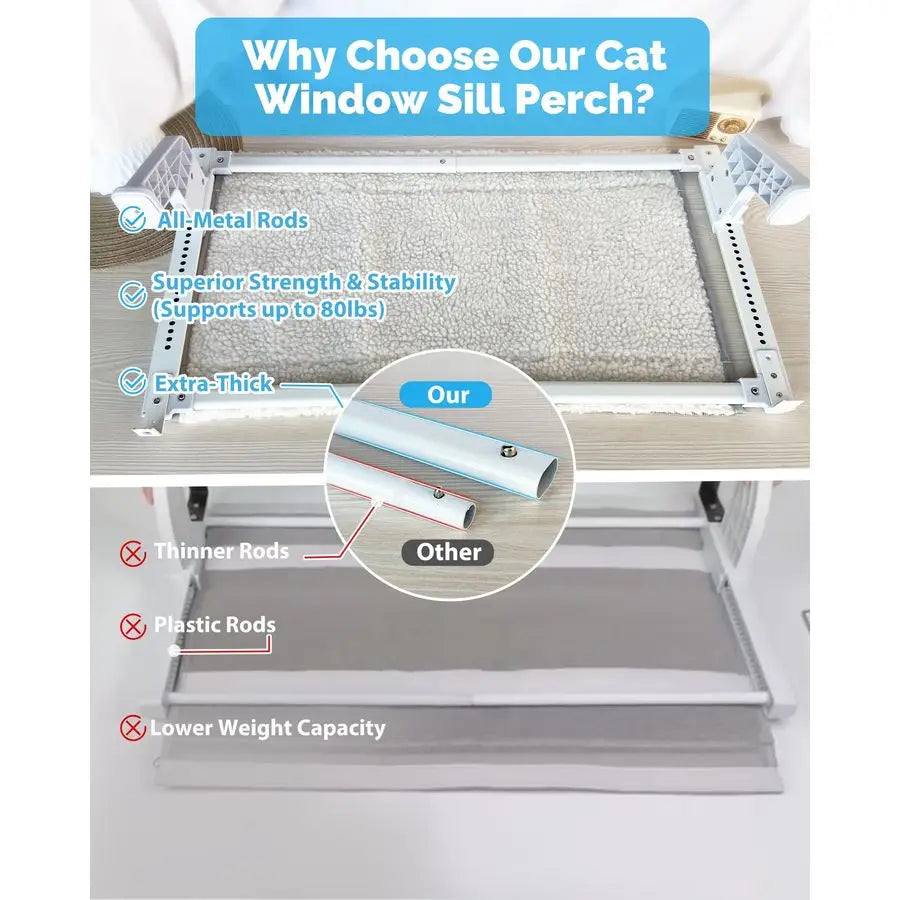 Ultimate Strength amp Durability Engineered with extrathick, allmetal rods, our cat window perch supports up to 120 lbs, making it perfect for large cats or multicat households. This cat window hammock is built to withstand everyday use, offering a stable and secure resting place for your feline to enjoy the view from the cat window shelf.